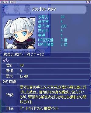 そのとき『ヘップス!!!』とかわけわからない言葉発しちゃったぜ☆ミ まぁ、向こうの善意だったので許しましたけど・・・ さって、トリスタ! うーん、なんと言うんでしょうな とりあえず前焼きいれたスティンガー☆ミ まさに神 今はもっと強いけどな!SSとり忘れてたことに編集してるとき気がついた僕 それと・・・・・ペット! ぅーん、かわいいの・・か・・・・よくわかんね・・・・・・ でも自分的には・・・・ こっちのがかわいいからいいけど^-^ でも40レベルおわち・・・・ そして売ろうと考え中の 最高値Cファルシオーン!! いくらかわかんないや・・・・ そしてPvへ ごめん調子乗りすぎたwwwwwwwwwww でも羊に囲まれて・・・・ そして人が増えて この人気ry そして時間が立つにつれ、みんないなくなってしまいました。 そしてそのとき会話g ^-^;;; そしてセレモニアへ(ぁ 結局何もしなかったけどね!!! さて、この辺で提出物やってきます・・・・ノシシ PR
